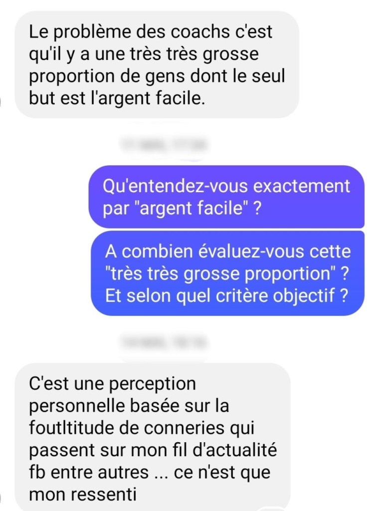 C’est l’histoire d’un gars qui me contacte sur Messenger pour m’expliquer – roulement de tambour – qu’il faut se méfier du coaching !